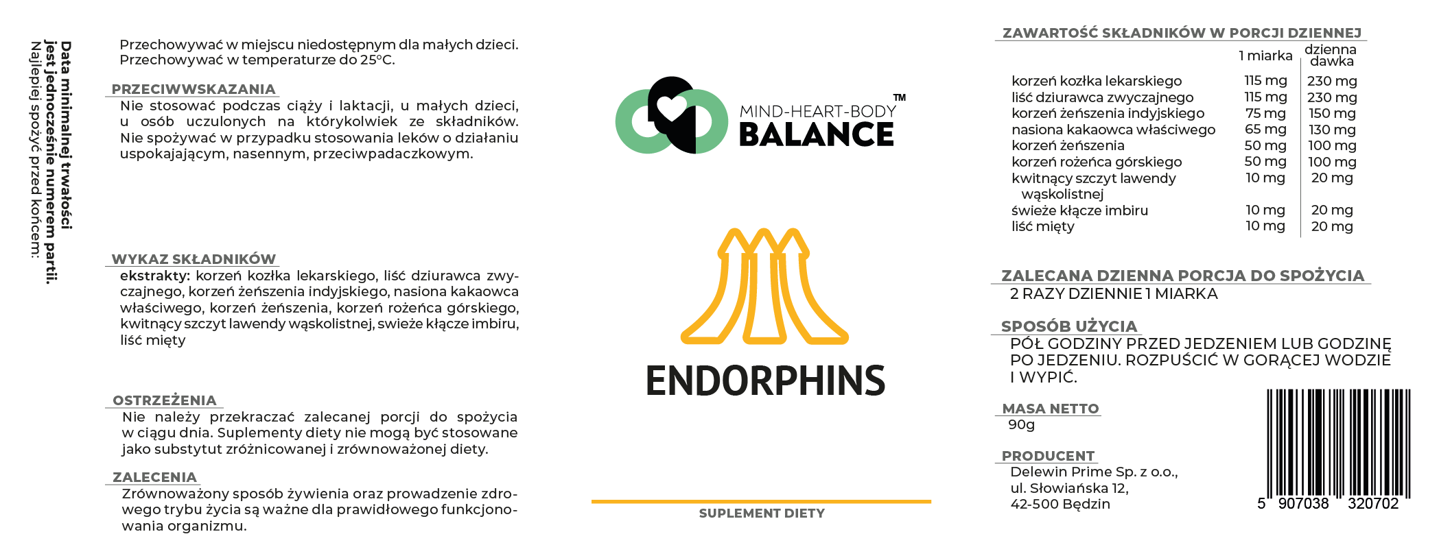 ENDORPHINS to ziołowa kompozycja inspirowana tradycyjnymi systemami zdrowia z różnych części świata. Formuła została opracowana w celu wspierania naturalnego rytmu emocjonalnego, wewnętrznej równowagi oraz ogólnego samopoczucia, w zgodzie z ideą harmonii ciała i umysłu. Składniki roślinne zawarte w produkcie znane są ze swojego tradycyjnego zastosowania wspierającego procesy adaptacyjne organizmu, równowagę neuroprzekaźników, w tym naturalne mechanizmy związane z endorfinami.