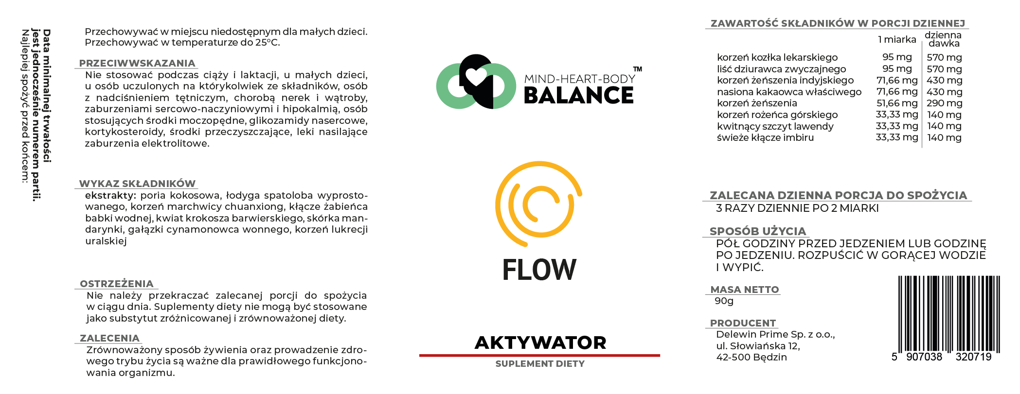 FLOW AKTYWATOR to ziołowa formuła inspirowana klasycznymi kompozycjami tradycyjnej medycyny chińskiej. Jej zadaniem jest wspomaganie prawidłowego przepływu płynów w organizmie, harmonizowanie krążenia oraz wspieranie fizjologicznej równowagi wodno-elektrolitowej.