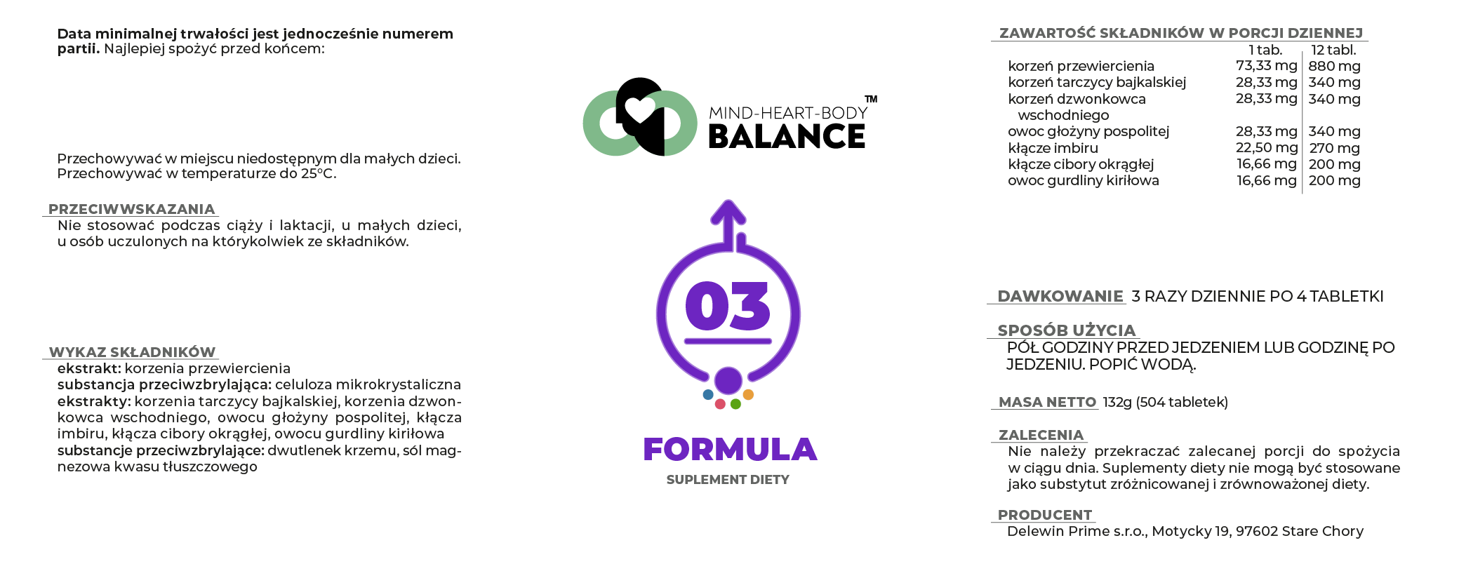 Ekstrakt korzenia przewiercienia, celuloza mikrokrystaliczna*, ekstrakt korzenia trczycy bajkalskiej, ekstrakt korzenia dzwonkowca wschodniego, ekstrakt owocu głożyny pospolitej, ekstrakt kłącza imbiru, ekstrakt kłącza cibory okrogłej, ekstrakt owocu gurdliny kiriłowa, dwutlenek krzemu*, sól magnezowa kwasu tłuszczowego*