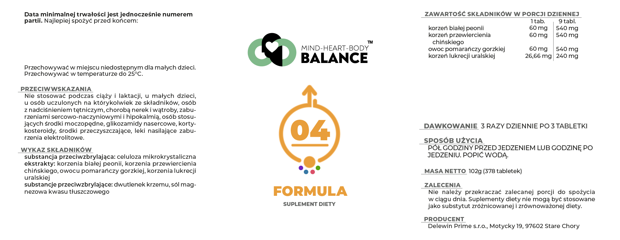 Celuloza mikrokrystaliczna*, ekstrakt białej peonii, ekstrakt korzenia przewiercienia chińskiego, ekstrakt owocu pomarańczy gorzkiej, ekstrakt korzenia lukrecji uralskiej, dwutlenek krzemu*, sól magnezowa kwasu tłuszczowego*