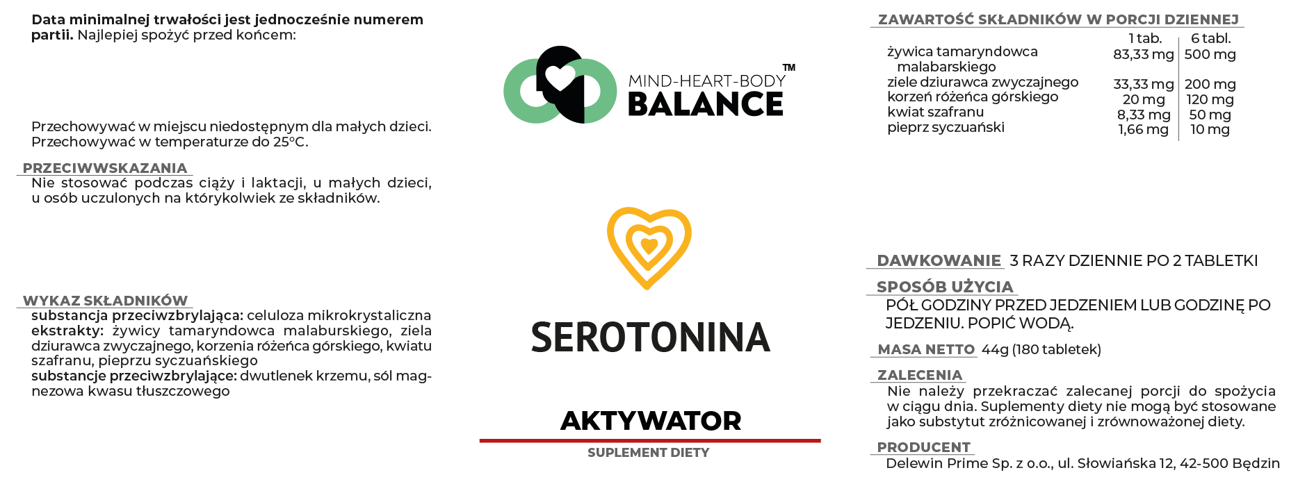 celuloza mikrokrystaliczna*, ekstrakt żywicy tamaryndowca malabarskiego, ekstrakt ziela dziurawca zwyczajnego, ekstrakt korzenia różańca górskiego, ekstrakt kwiatu szafranu, ekstrakt pieprzu syczuańskiego, dwutlenek krzemu*, sól magnezowa kwasu tłuszczowego*